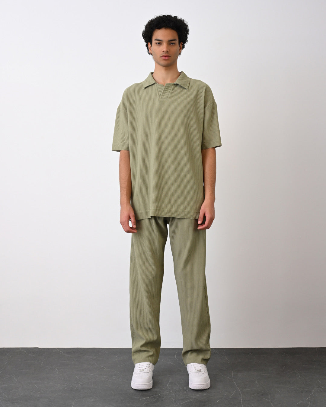 Oversize Cord T-Shirt mit Kragen - Kaki