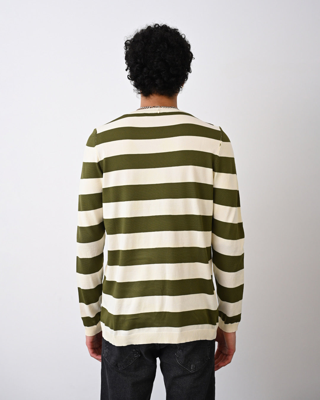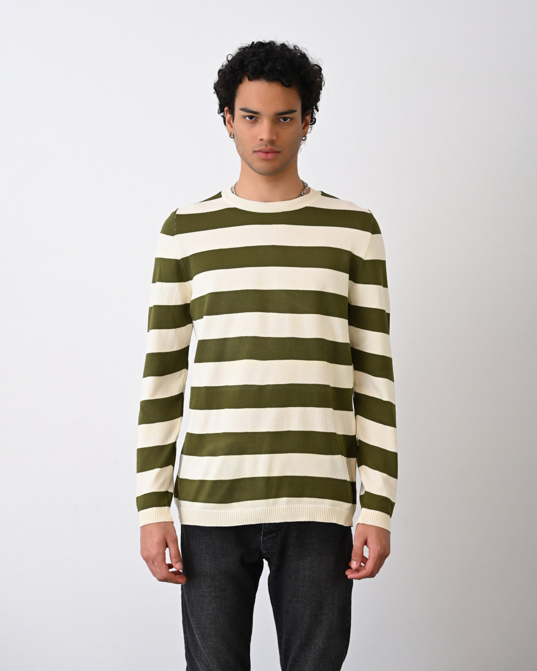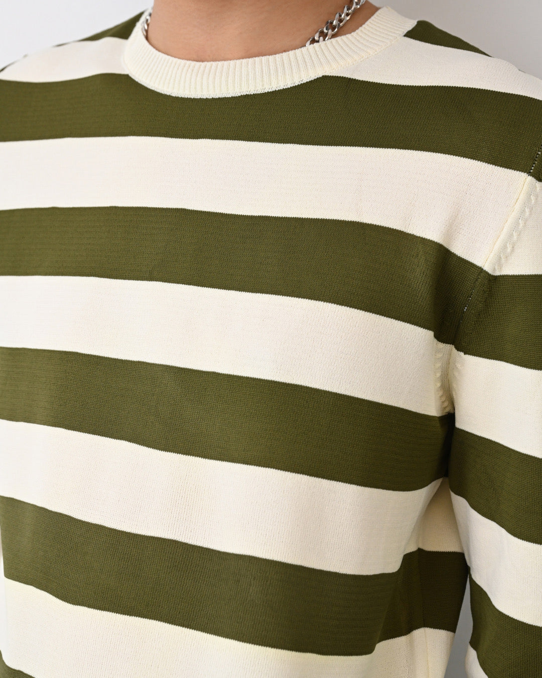 Slim Fit gestreiftes Langarmshirt - Khaki/Creme