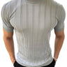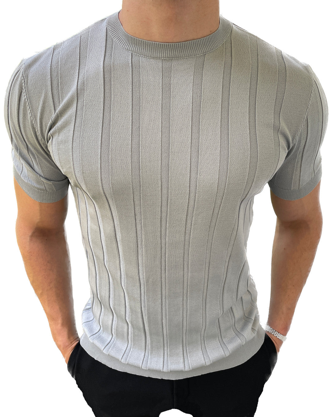 Unser Slim Fit gestreiftes T-Shirt aus weichem Stoff in Grau ist eine edle und stilvolle Wahl für jeden Tag. Mit einer schlanken Passform und feinen Streifen ist es ein elegantes, modisches Accessoire, das sich perfekt für den Alltag eignet.