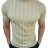 Unser Slim Fit gestreiftes T-Shirt aus weichem Stoff in Hellbraun ist eine edle und stilvolle Wahl für jeden Tag. Mit einer schlanken Passform und feinen Streifen ist es ein elegantes, modisches Accessoire, das sich perfekt für den Alltag eignet.